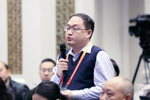 国务院新闻办公室于2019年11月28日上午10时举行新闻发布会,请中央农办主任、农业农村部部长韩长赋,农业农村部党组成员兼中农办秘书局局长吴宏耀介绍《中共中央国务院关于保持土地承包关系稳定并长久不变的意见》有关情况,并答记者问。图为农民日报记者提问。农业农村部网站 李镆摄