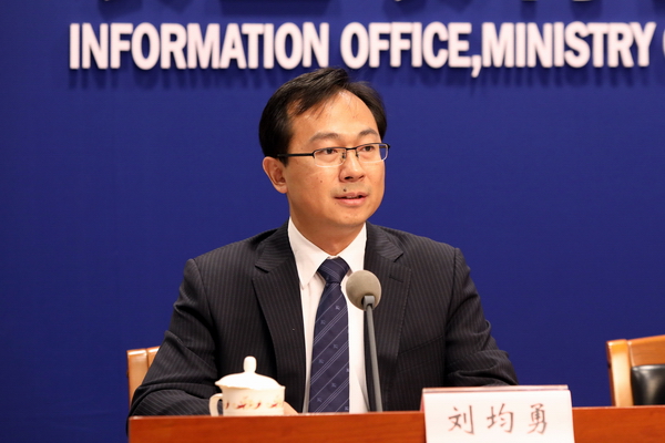 2020年10月21日(周三)上午10时,农业农村部新闻办公室举行新闻发布会,介绍2020年前三季度农业农村经济形势,并回答记者提问,图为农业农村部办公厅副主任刘均勇主持新闻发布会。农业农村部网站 丛琳摄