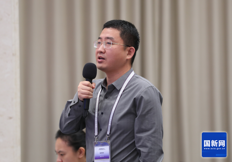 国务院新闻办公室于2025年9月16日(星期二)上午10时举行“高质量完成‘十四五’规划”系列主题新闻发布会,请农业农村部部长韩俊、农业农村部副部长张兴旺、农业农村部副部长麦尔丹·木盖提介绍“十四五”时期农业农村发展成就,并答记者问。图为上游新闻记者提问。刘健 摄