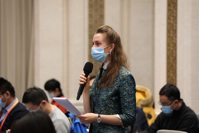国务院新闻办公室定于1月13日(星期三)10时举行新闻发布会,请农业农村部副部长刘焕鑫介绍落实五中全会精神,全面推进乡村振兴有关情况并答记者问,图为中阿卫视记者提问。农业农村部网站 郭文静摄
