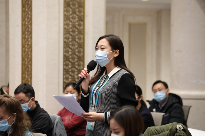 国务院新闻办公室定于1月13日(星期三)10时举行新闻发布会,请农业农村部副部长刘焕鑫介绍落实五中全会精神,全面推进乡村振兴有关情况并答记者问,图为香港紫荆杂志记者提问。农业农村部网站 郭文静摄