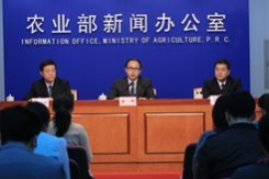 农业部办公厅副巡视员雷刘功在主持新闻...