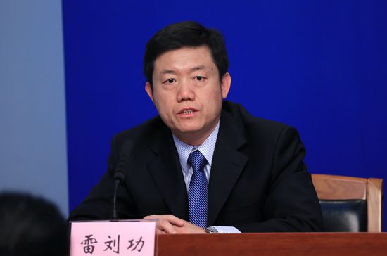 农业部办公厅副巡视员雷刘功在主持新闻发布会