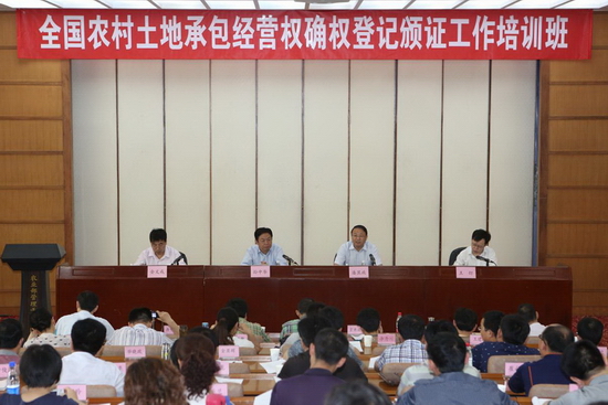 本网讯 5月27日,农业部在京举办全国农村土地承包经营权确权登记颁证工作培训班。农业部总农艺师孙中华在开班式上强调,要深刻认识开展农村土地承包经营权确权登记颁证工作的重要性和紧迫性,自觉把思想和行动统一到中央的决策部署上来,扎扎实实做好这项工作。