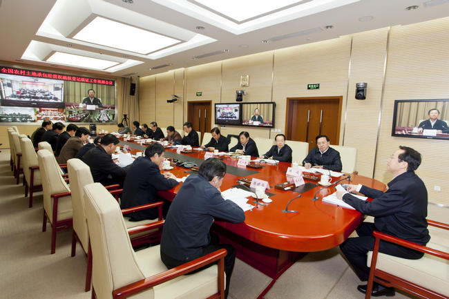 会议由农业部副部长陈晓华主持。中央农办副主任韩俊、国家档案局局长杨冬权,财政部、国土资源部、国务院法制办、农业部等领导小组成员单位有关负责同志出席会议。山东、四川、安徽和江苏省农业部门的负责同志作了典型发言。视频会议主会场设在农业部,全国31个省(自治区、直辖市)共设立了省、市、县1165个分会场,近2.9万人参加了会议。部分省、市、县党委政府分管农业农村工作的领导同志也应邀参加了会议。