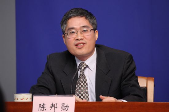 农业部办公厅副主任陈邦勋在主持新闻发布会