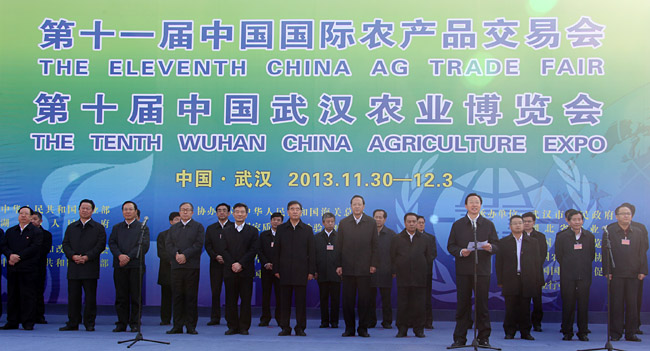 本网讯:11月30日,由农业部和湖北省政府共同主办的第十一届中国国际农产品交易会暨第十届中国武汉农业博览会在九省通衢的湖北省武汉市开幕。中共中央政治局委员、国务院副总理汪洋,全国人大常委会副委员长张宝文,全国政协副主席罗富和等出席开幕式并参观。