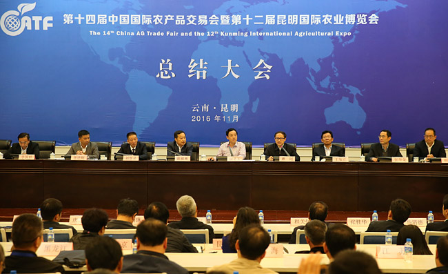 本网讯 第十四届中国国际农产品交易会暨第十二届昆明国际农业博览会经过四天的展示交易,11月8日在云南昆明市落下帷幕。农业部副部长屈冬玉在总结大会上介绍,本届农交会实现现场贸易额699亿元,现场销售额2.5亿元。