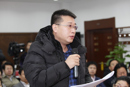 2017年1月20日(星期五)上午10时,农业部新闻办公室举行新闻发布会,农业部于康震副部长等向媒体介绍海洋渔业资源管理制度改革有关情况,并回答记者提问。中国网、农业部网站现场直播,敬请关注。图为中央电视台记者提问。