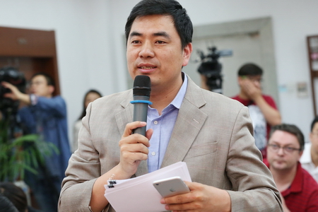 农业部定于2016年5月5日(星期四)上午10时在农业部新闻办公室举行新闻发布会,农业部余欣荣副部长等向媒体介绍农业结构调整有关情况,并回答记者提问。中国网、农业部网站现场直播,敬请关注!图为中央电视台记者提问。