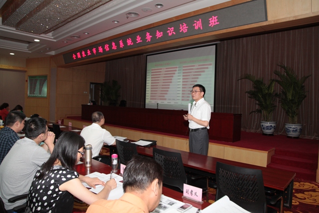 6月4日-8日,第二期培训班在北京农业部管理干部学院举办。本期培训班学员以省级市场信息业务部门工作人员为主,150名来自全国31个省(自治区、直辖市)和新疆生产建设兵团的学员参加培训。培训采用专题讲座、案例教学、现场教学、小组讨论等多种方式,邀请专家学者、企业负责人及市场信息司有关负责同志为学员授课,并赴中国农科院农业信息研究所进行农业信息监测预警演示教学。培训内容涵盖农产品产地市场体系建设、“O2O”农产品电子商务、农业信息监测预警、物联网与生产信息化等多个方面。6月4日,农业部市场与经济信息司司长张合成参加开班式,作《加快农业市场化改革全面推进农业信息化》的主题报告,与学员深入开展互动交流,反响热烈;市场与经济信息司各处处长分别进行了专题业务讲座,并参与学员的分组讨论,听取各地学员的意见和建议。