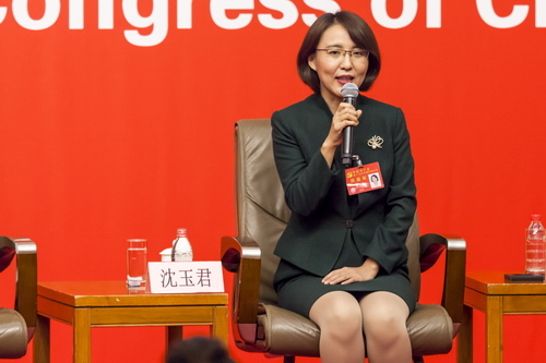 10月21日,十九大新闻中心举办集体采访活动,主题为“农业科技创新”。图为农业部规划设计研究院农村能源与环保研究所副所长沈玉君。农业部网站 李卫东摄