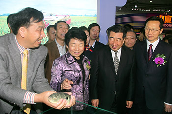 10月的成都,金秋送爽,丹桂飘香。开幕式前,回良玉饶有兴趣地参观了交易会展厅,一边仔细观赏种类丰富的优质农产品和深加工产品,一边认真听取展示情况介绍,不时与参展人员亲切交谈,详细了解农产品生产、加工和贸易情况。回良玉对各地在发展粮食生产、建设现代农业等方面取得的成就予以充分肯定,称赞本届农交会形式多样,内容丰富,主题突出,充分展示了农业农村发展取得的丰硕成果,生动描绘了“十二五”现代农业发展和社会主义新农村建设的美好前景。他说,要继续坚持农交会的办展宗旨和办会原则,利用农交会的影响力,不断推动农业国际合作,促进农产品流通体系建设,搭建好农产品贸易和交流合作平台。