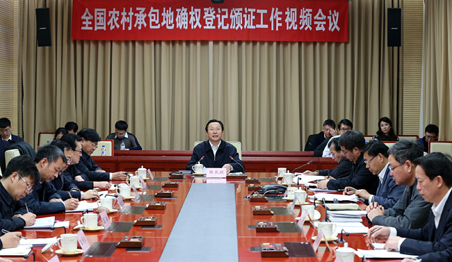 2月21日,农业部召开全国农村承包地确权登记颁证工作视频会议,贯彻落实中央1号文件和中央农村工作会议、全国农村集体产权制度改革电视电话会议精神,总结交流前一段工作成效,分析当前面临形势,对下一阶段工作进行再强调、再部署。农业部部长韩长赋在会上强调,各地要充分认识到确权工作的紧迫性和艰巨性,找准工作重心,加快推进农村承包地确权登记颁证工作,确保按时完成中央布置的任务。