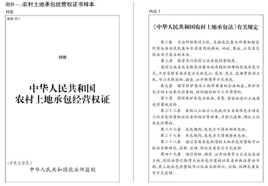 《中华人民共和国农村土地承包经营权证管理办法》已于2003年10月9日农业部第23次常务会议审议通过,现予发布,从2004年1月1日起实施。