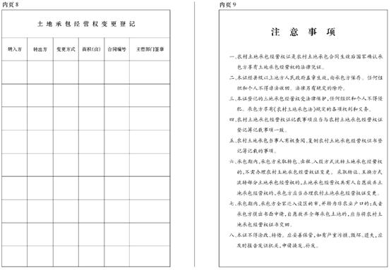第九条 农村土地承包经营权证登记簿记载农村土地承包经营权的基本内容。农村土地承包经营权证、农村土地承包合同、农村土地承包经营权证登记簿记载的事项应一致。