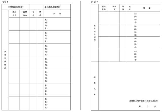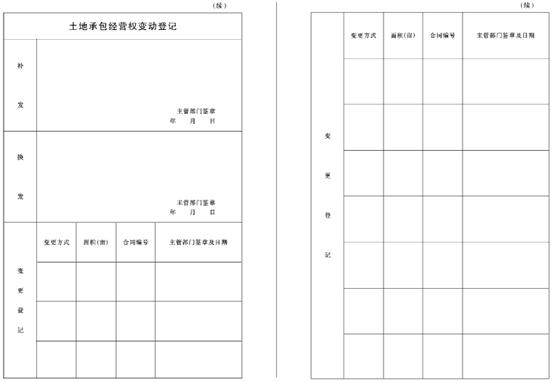 四、农村土地承包经营权证登记簿(样本)(以下附件样本均为缩小样)
