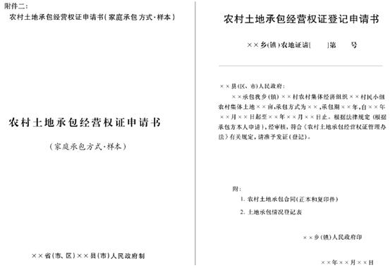 二、农村土地承包经营权证申请书(家庭承包方式·样本)