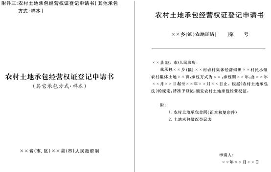三、农村土地承包经营权证登记申请书(其它承包方式·样本)