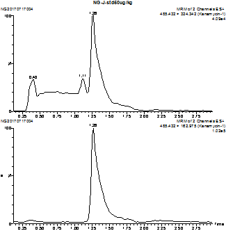 本方法在牛组织中卡那霉素A的检测限为20µg/kg,定量限为50µg/kg。