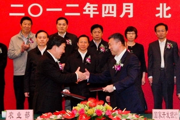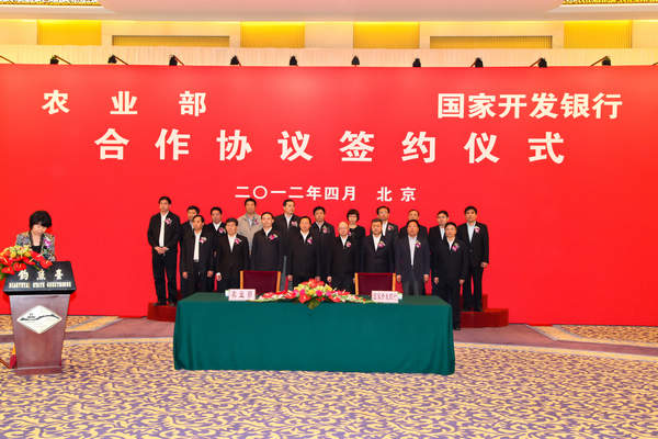 农业部副部长余欣荣、牛盾和国开行副行长袁力分别代表双方签署协议。农业部总经济师陈萌山、国开行董事会秘书陈民以及双方相关司局负责同志参加了签字仪式。