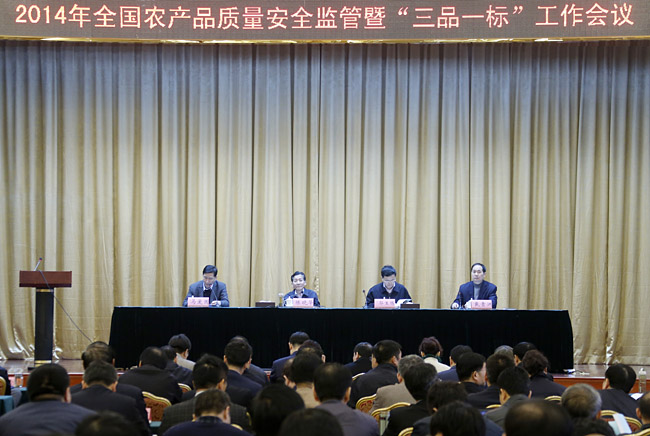 会议强调,要实现今年农业农村经济发展“稳中求进”的目标,不容在农产品质量安全上有任何闪失。各级农业部门要以开展农产品质量安全监管年活动为统领,重点抓好七项工作:一是强化突出问题的治理,深入开展7个专项整治行动,始终保持高压态势,严打违法犯罪行为。二是推动质量追溯体系建设,抓紧搭建全国统一的追溯信息平台,积极开展追溯试点,大力推进农产品产地准出和市场准入管理。三是强化风险防范和应急处置,将“菜篮子”和大宗粮油产品全部纳入风险评估范围,完善应急预案,加强舆情监测,加快提升应急能力和水平。四是大力推进农业标准化,加快标准制修订步伐,扩大“三园两场”建设规模,加强农业标准化示范县创建,普及标准化生产技术。五是加强“三品一标”建设和管理,严格认证标准,强化证后监管,发挥“三品一标”在过程控制、减量化生产和生态环境保护方面的示范引领作用。六是强化制度机制建设,按照农产品生产经营链条,找准薄弱环节和工作着力点,把相关管理制度建立起来,构建起农产品质量安全监管长效机制。七是加强基层监管体系建设,年底前全部建立地县监管机构,强化地县质检体系建设项目的实施与管理,加强条件保障和人员培训,加快提升基层农产品质量安全监管能力。