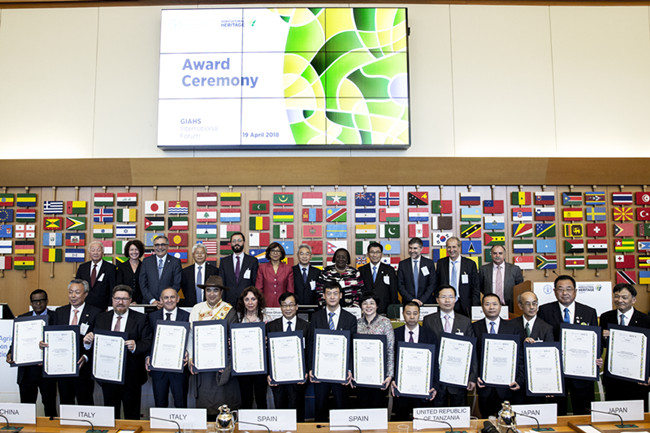 本网讯 4月19日,联合国粮农组织(FAO)主办的第五届全球重要农业文化遗产(GIAHS)国际论坛在意大利罗马召开,我国“甘肃迭部扎尕那农林牧复合系统”“浙江湖州桑基鱼塘系统”“山东夏津黄河故道古桑树群”“中国南方山地稻作梯田系统(包括崇义客家梯田、尤溪联合梯田、新化紫鹊界梯田、龙胜龙脊梯田)”等4项新遗产获得了FAO授牌,使我国遗产总数达15项,居世界各国之首。