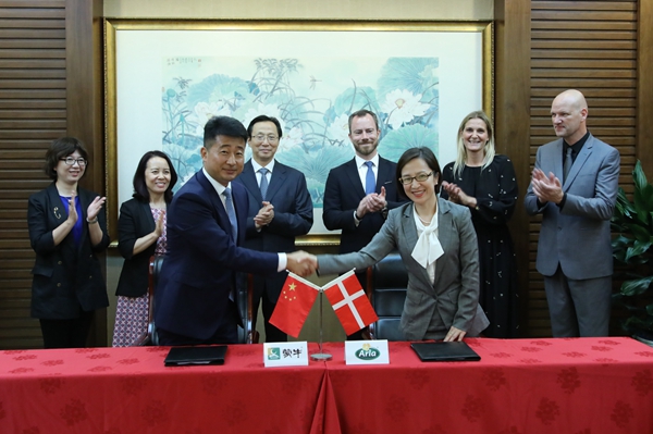 会见后,韩长赋和埃勒曼-延森共同见证了蒙牛集团与丹麦阿拉集团签署关于中丹乳品技术中心的合作协议。