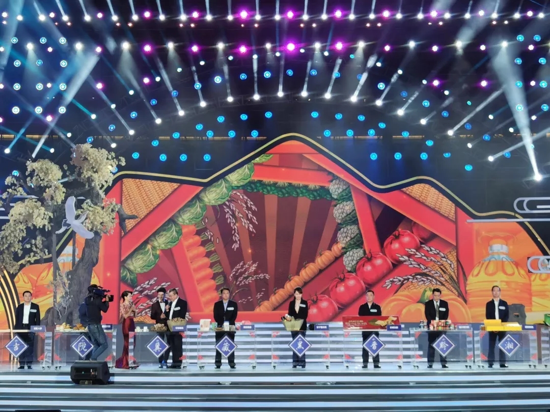 舞台上色香味俱全,舞台下也“别有风味”:34个展位沿场地依次铺开,宛如“集市”。各种特色农产品被当场做成了美食,香气弥漫整个会场;现场直播的镜头时不时地由主舞台切换到“集市”,让观者垂涎欲滴。