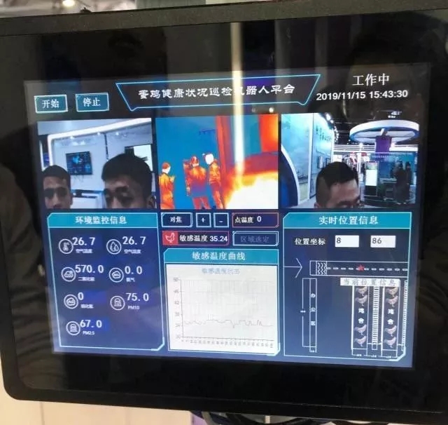 在智能巡检机器人的屏幕上,鸡群的敏感体温、鸡舍的环境信息等数据一目了然。