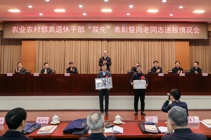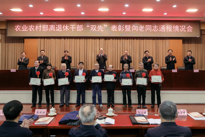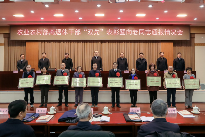 本网讯 12月27日,农业农村部召开离退休干部“双先”表彰暨向老同志通报情况会,表彰部系统离退干部先进集体和先进个人,向部系统老同志通报工作情况,农业农村部副部长余欣荣出席会议并讲话。