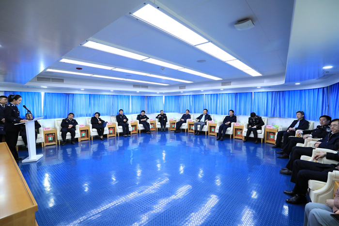 与会领导听取南京市长江禁渔联动执法中心工作汇报