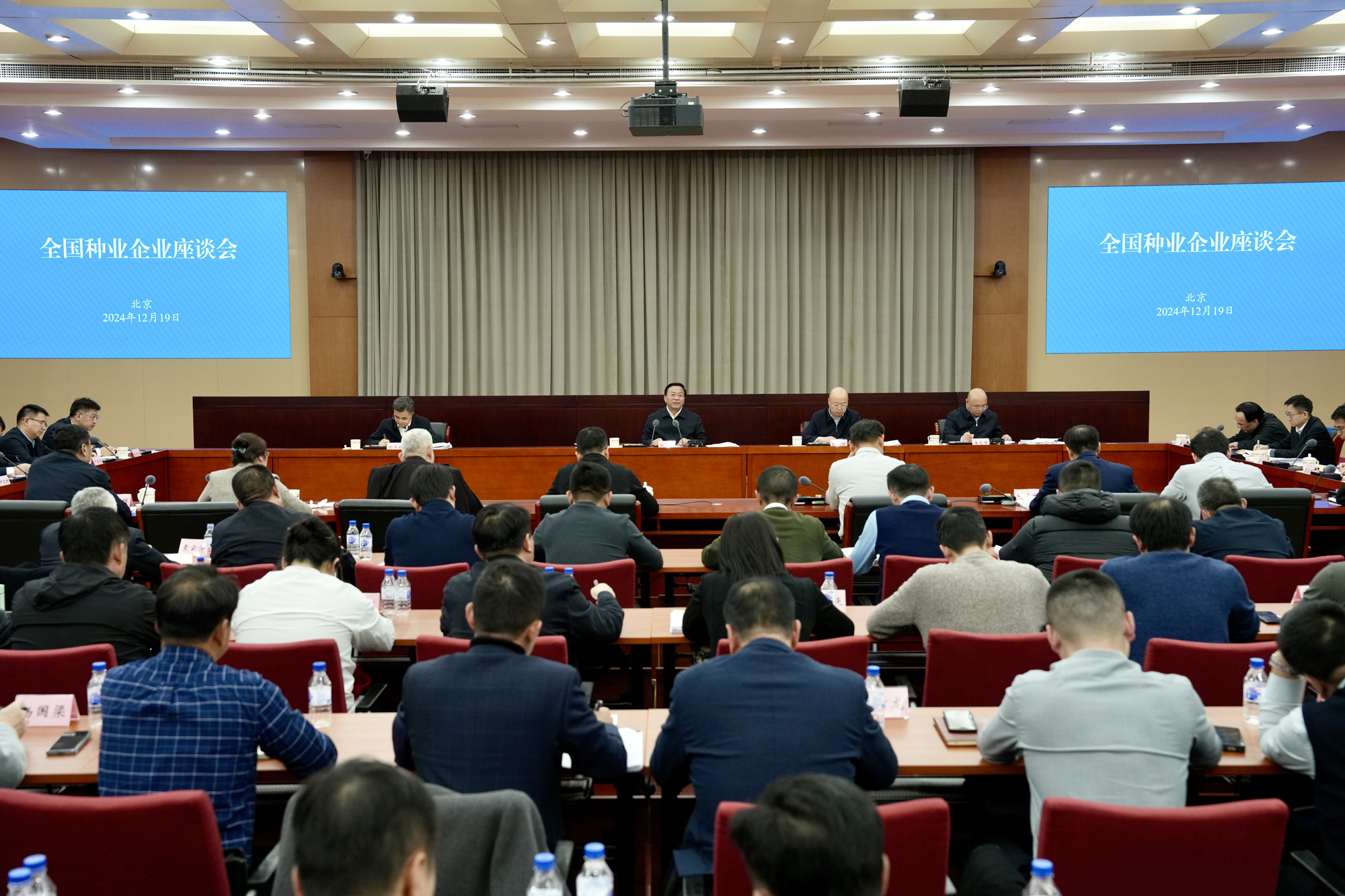 本网讯 12月19日,农业农村部召开全国种业企业座谈会,部党组书记、部长韩俊主持会议并讲话。会议强调,要深入学习贯彻习近平总书记关于种业振兴的重要指示精神,认真落实党的二十届三中全会、中央经济工作会议、中央农村工作会议和全国科技大会部署,把种业振兴摆上农业强国建设的突出位置,切实增强责任感紧迫感,下大力气抓好提升种业自主创新能力,多措并举培强育优一批高水平种业企业,打造以企业为主体、产学研深度融合的商业化育种体系,加快实现种业科技自立自强、种源自主可控,更好保障农业产业安全。