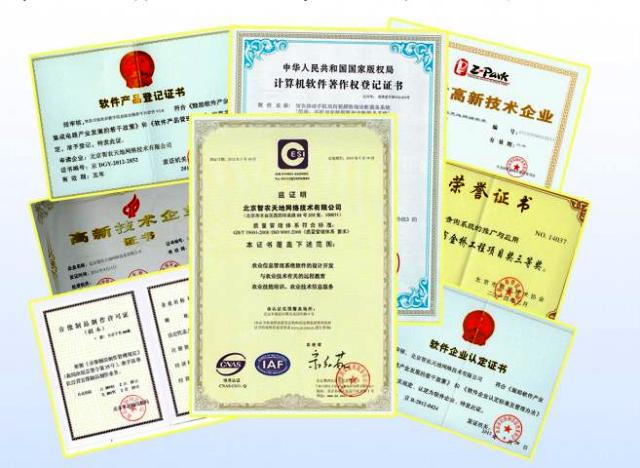 ISO 9001:2008质量管理体系认证、国家高新技术企业证书、中关村高新技术企业证书、音像制作许可证、双软认证等。
