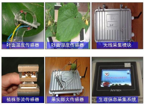 技术参数:数字式空气温度、湿度集成测量传感器:温度测量范围为-40—+80℃,测量精度:±0.1℃,分辨率:0.1℃;空气湿度量程:0-100%RH,精度:±2%RH,分辨率:1%RH;光照强度传感器:量程:0-50万lx,测量精度:±5%,分辨率:0.1klx,DC12V供电,4-20mA输出;CO2浓度传感器:DC12V供电,测量范围:0-20000ppm,测量精度±30ppm,输出0-5V电压、4-20mA电流信号或特定的频率信号;植株茎流传感器:测量范围0-±3ml/h(相对值),适合茎杆直径4-10mm;果实生长速率传感器:测量范围15-90mm,分辨率±0.01mm;茎秆增长传感器:测量范围4-90mm,分辨率±5μm。