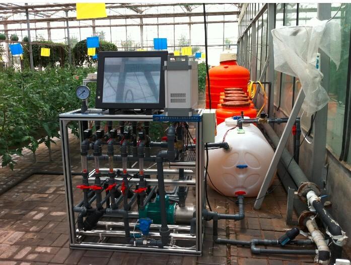 本装备系统主要采用先进的计算机、工业自动控制及物联网技术,根据不同蔬菜种类的需水需肥规律、生长环境条件以及土壤状况进行设计。系统即能够按照用户在可编程控制器上对灌溉施肥程序及营养液组分进行设置,实现人工参与的灌溉施肥管理,也可以直接选择控制器上设有的蔬菜种植种类,继而进入全自动灌溉施肥模式。然后借助系统自带的压力系统将有机发酵液肥(或可溶性无机肥料)与灌溉水融为一体,并通过可控管道及滴管系统,均匀、定时、定量地直接供应给蔬菜作物。