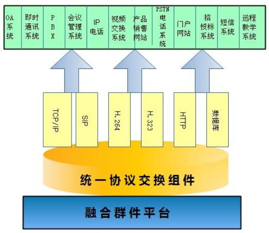 融合信息平台核心技术为“统一协议交换组件”,统一协议交换平台不仅可以定义各种数据结构,各种表结构,还可以对多种通讯协议进行接收、保存、转换和转发,同时统一协议交换组件还可以对各种接口进行自定义,以适应不同的应用系统,由此实现控制其他的系统的资源并交换其他系统数据,解决了用户信息化建设过程中不同系统不兼容问题。融合信息平台作为一个强大的开发平台,满足用户在这个图形化平台上开展深度二次研发,实现工作流管理、知识管理、任务过程控制、项目管理等成熟思想,为企业提供了一个足以满足长期发展的强壮的基础平台。