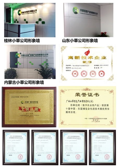 经过不断的努力,小草现拥有受理专利12项;软件软件著作权29项;注册商标9项;“小草数字农业”产品获得了第八届中国东盟博览会高新技术展的优秀参展项目奖; “智慧导游系统”获得首届漓江创意奖; “小草分布式医学影像系统”获得广西软件行业协会的优秀软件产品奖;《数字农业类产品》荣获第十届—东盟博览会先进技术展优秀参展项目奖;2014年度中国食用菌商务网、食用菌市场“上榜品牌”。