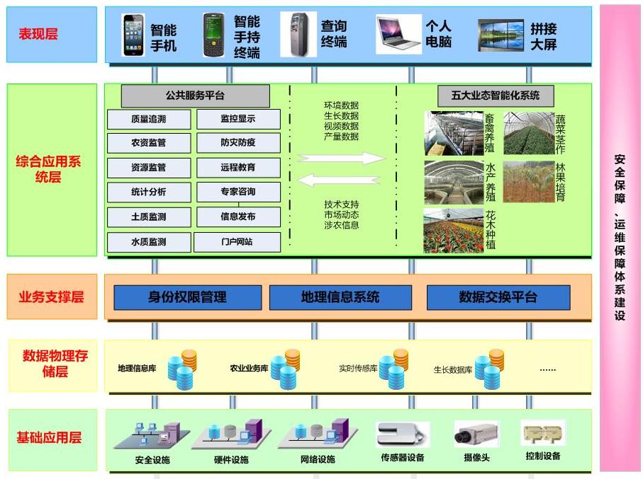 1.平台涵盖现代农业生产领域中的蔬菜茎作、畜禽养殖、水产养殖、林果培育、花木种植五个业态的智能化系统,满足现代化立体农业的管理需求;