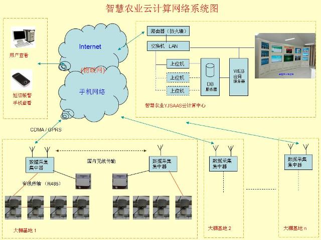 3、可在大棚中采用有线布线分布方式,也可采用电池供电的无线(zigbee)组网方式。