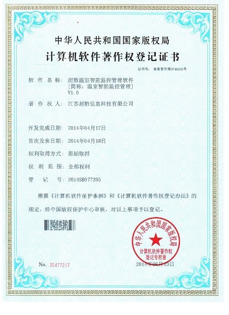 江苏超数信息科技有限公司立于2013年7月,注册资本501万,是一家专业从事工业/农业自动化控制系统和各类应用管理软件设计、开发、销售和服务的高科技企业。公司下设技术部、工程部、业务部,具有较高的专业技术水平和较强的设计、研发、生产能力,目前拥有国家发明专利1项、实用新型专利3项和软件著作权4项,可为用户提供计算机软件设计开发销售、物联网技术研发及应用、自动化控制设备研发销售、信息网络服务与系统集成、安防监控工程设计实施、建筑智能化工程设计实施、计算机硬件及耗材销售、计算机软件技术交流等服务。我们的宗旨:专业是基础、服务是保证、质量是信誉,凭借可靠的产品质量和良好的售后服务,力求赢得广大用户、行业人士及社会各界的认可与好评。