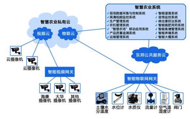 东邦智慧农业整体解决方案是面向农业生产全过程,覆盖大田、温室、鱼塘、养殖、花卉等多领域的,综合性智慧农业整体解决方案。该方案以农业生产管理、环境感知、智能决策、数据分析为重点,形成了包括物联平台、GIS平台、管理平台、安全平台、电子商务平台及决策分析平台为主体的一整套智慧农业综合解决方案,以特有的公有云与私有云相结合的服务方式,向政府政务人员、生产决策人员、生产者、商务人员、销售人员及社会公众提供丰富智慧的服务。其主要特点体现在: