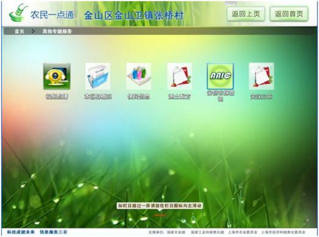 为农综合信息服务平台于2007年开始运行至今,以农民为服务的核心对象,针对农民不同层次的信息操作水平,充分利用已有的信息接收工具,支持触摸屏查询机、机顶盒、移动电话、固定电话终端、电视、电脑等多种信息终端,以多种方式有机结合的信息手段,提供农情信息、气象预报、政策法规、农业技术、市场行情、村务公开等各类与其生产、生活密切相关的综合信息。在推广期间总共培训村信息员6000多人次,村民2000多人次,上门维护21000多次,涉及到的村达到1500多个,确保了又好又快地服务到三农。同时,在项目实施过程中,平台经常接受国际组织、国家部委和兄弟省市各级领导和专家的参观、指导和学习,得到了一致的认可。