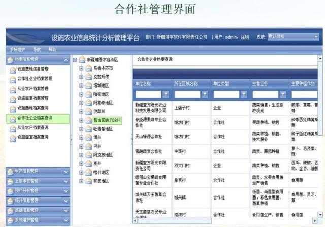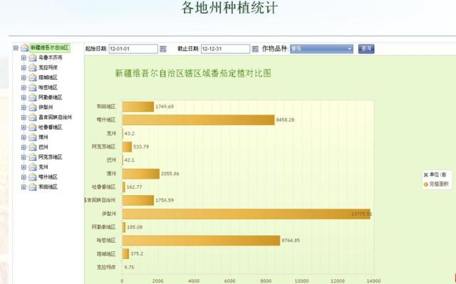 项目通过计算机技术和农业信息技术相结合的方式,建立全疆基于设施农业的综合性信息统计分析管理系统。可提供全面的设施农业信息资源,包含精确至大棚、温室的建设投产信息;农民专业合作社及农户信息;农作物种植生产分布情况,重点研究分地域农产品预产分析计算模型的建立,实现各地农作物预产测产,用以掌握新疆设施农业投资生产、采收销售,了解合作社运营、农技培训技术等状况。解决了以往农业管理部门对各地(州)、县(市)、乡(镇)的设施农业信息掌握不及时、不到位,对各地农产品上市数量不能较为准确预知和合理组织产业布局的问题,达到方便各级管理部门对辖区设施农业情况的了解,并指导下阶段农业生产工作的开展的目标。目前,全疆设施农业面积已达100万亩以上,拥有温室大棚数量30余万座,系统可满足设施农业信息统计上报分析工作不间断开展的需要,为全疆设施产品市场销售提供参考与指导,为农超(商)对接提供生产数据支撑,从而形成从上至下规划种植布局,优化种植结构,合理搭配茬口,为农业生产奠定基础。