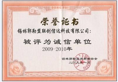 ◆2009年被锡盟消费者协会评为“诚信单位”