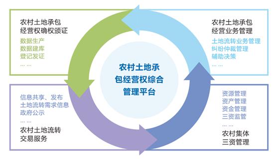 农村土地承包经营权综合管理解决方案依据《土地承包法》、《农村土地承包经营权流转管理办法》、《农村土地承包经营权登记试点工作规程》、《农村承包土地调查数据库规范》设计农村土地承包管理、流转服务流程、数据共享交换体系,从而大幅度提高土地流转管理办事效率。