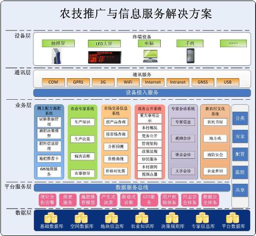 重点要解决的问题:分别围绕农业实用技术、产业化生产、经营管理、市场流通、资源环境、政务公开和新农村文化等信息资源,搭建市、县、乡、村四级基层农技推广平台,市级平台负责全市农业资源信息的宏观管理,为合理有序指导全市农业资源开发利用提供决策依据;区县级平台是基层农技推广的主体,为乡镇或村的应用提供环境支撑和农业生产、经营实用技术的指导服务;乡镇级平台作为基层信息采集点,完成区内农业资源信息的调查;村级平台作为基层农技推广的窗口,为基层农民提供直接、直观地农业生产、经营服务信息。通过农技推广与信息服务平台实现最大限度地为基层提供信息咨询服务。