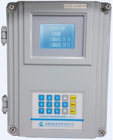 农业智能控制终端CXR-NZ102是农业智能管理系的核心设备,它包括有数字梯度表技术和自动控制管理技术,如图2所示,是由成都诚欣然科技有限公司专门针对现代农业工厂化生产而研发生产的集通信、自动控制、机电设备、各种传感器和终端控制器等技术于一体的高新技术智能控制产品,与计算机技术、网络技术、数据库技术和现代农业技术等组成农业智能管理系统,适用于农林科研及农林植物生产养护作业。农业智能管理系统用于检测植物所处的环境条件,分析这样的条件是否适宜于植物生长,如果不适宜于植物生长,则控制相应的机电设备,如喷灌、滴灌、补光、排气、升温、降温、增加二氧化碳浓度、喷药、施肥等,实现自动调节植物生长的环境条件,使其处于最佳的生长环境,达到提高品质、增加收益的目的。该产品可以独立使用,也可以和计算机联网使用,便于农业生产现场的远程管理作业。