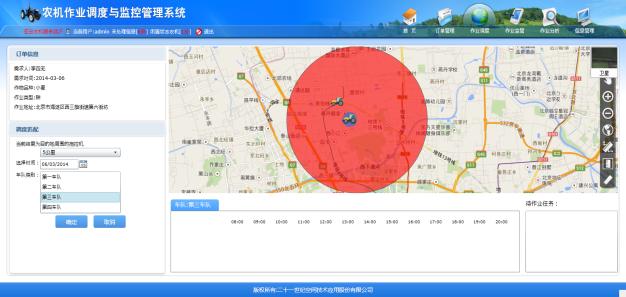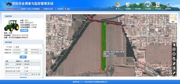 “基于北斗农机高效作业和精确调度系统”旨在将北斗卫星导航技术、遥感技术及地理信息系统技术应用到农业机械现代化建设中,解决农户与农机服务之间的供需信息高效匹配手段不足、农机作业动态监管、确调度方面技术手段欠缺、农机行业宏观决策与应急指挥管理等方面缺少科学、真实高效的数据等问题,实现农机服务组织的规范化管理,增强农机服务实时、科学监控、调度的能力,促进现代农业发展。