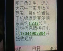 虚拟围栏与越界报警:在地图上可设置牧民的牧区范围,如果越界,不仅在电子地图上显示报警信息,而且将自动向牧民发送短信告知牛越界信息,便于追踪管理。
